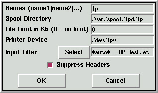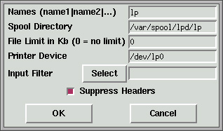 sd=는 스풀 디렉토리 이름으로서 필수적이다. 리눅스에서는 스풀 디렉토리가 /var/spool 밑이다. 노(suppress header)를 설정하면 프린트 작업을 보낼 때마다 앞에 나오는 배너 페이지가 안나오게 할 수 있다. 배너 페이지란 프린트 작업이 누구의 것이지 보여주는 페이지로서, 다중 사용자 환경에서 프린트물이 누구의 것인지 알려주는 표시이다. 개인 사용자는 이 페이지가 필요치 않으므로 넣어준다. 하지만, 여러 사람이 쓸 수 있도록 하는 네트웍 프린터에서는 sh를 넣지 안아야 할 것이다.