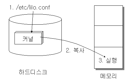 LiLO는 위의 그림과 같이 일단 작동을 시작하면, /etc/lilo.conf의 설정 파일을 읽어서 커널(Kernel)의 위치를 파악합니다. 그 다음, 커널을 메모리에 복사를 하고, 실행을 합니다. 보통의 경우 아래의 메시지와 같은 커널의 크기가 커져서 압축을 하여서 만드므로, 실행시키기 앞서서 압축을 풀고 실행합니다. LiLO boot : Loading linux .............................. Uncompressing Linux ... OK, booting the kernel