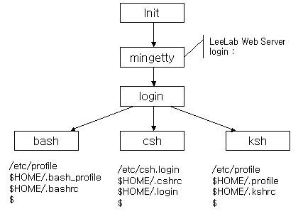 지금 까지 리눅스 부팅과정에 대해 설명했습니다. 다음은 로그인 과정입니다. 6. 터미널 로그인(Terminal Login) 부팅 후에는 mingetty가 가상 콘솔을 열고, 사용자가 로긴하기 위해서는 login 프로그램이 작동하여 인증을 거치면, 쉘이 작동하게 됩니다.