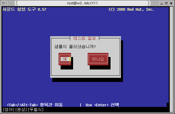 여기서 자신이 사용하는 사운드 카드의 종류를 찾아 선택한 후 [enter] 키를 누르거나 '확인' 버튼을 누르면 다음과 같은 화면이 나타납니다.
