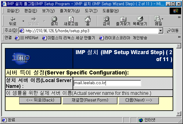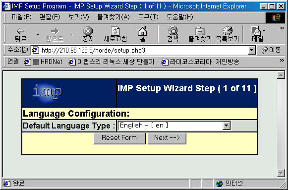 넷스케이프와 같은 웹 브라우저를 이용해서 http://localhost/horde/setup.php3에 접속하면 아래와