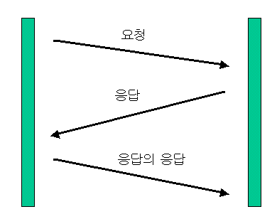 - 접속설정 3way handshaking을 토대로 접속이 이루어진다. 한쪽에서 접속을 요청하면 다른 한쪽에서 이 요청에 대한 응답을 하고, 접속을 요청했던 쪽은 그 응답에 대한 응답을 보냄으로써 3단계를 거쳐 접속이 이루어진다.<그림5>
