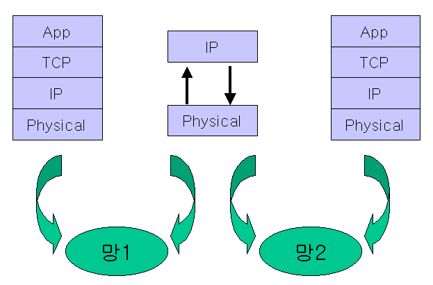 나. 비연결형 데이터그램을 전달하는 IP 이제 IP에 대해서 알아보도록하자. IP는 Internet Protocol로, 비연결형 데이터그램(Datagram)의 전달을 담당한다. 이 IP가 비연결형이고, 비신뢰적이라는 것은 조금 의아하게 생각할 수 있다. TCP가 신뢰적 전송을 하려면 IP도 신뢰적이어야 하지 않을까 할지 모르지만 꼭 그렇지는 않다. TCP가 알아서 해주는 일을 IP까지 할 이유는 없기 때문이다.