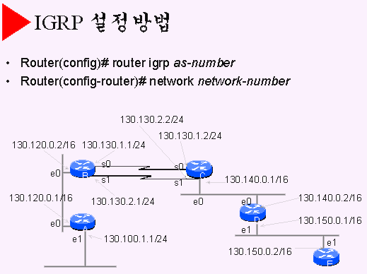 - AS Number를 필요로 한다. AS Number가 동일한 라우터끼리만 IGRP routing information을 교환한다.