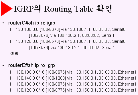 - IGRP는 동일목적지에 대해 cost가 다른 route를 최대 4개까지 지원한다.