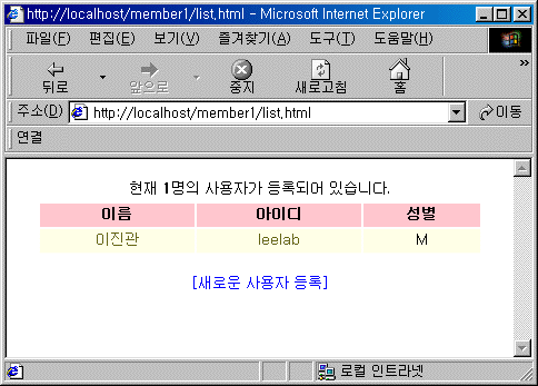 </table> <p align=center> <a href="adduserform.html">[새로운 사용자 등록]</a> </p>