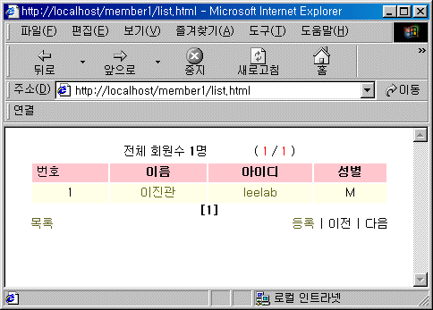 <table width="400" border="0" cellspacing="0" cellpadding="0" align="center"> <tr> <td align="left"> <a href="list.html">목록</a> </td> <td align="right"> <a href="adduserform.html">등록</a> | <? ########## 이전페이지가 존재할 경우 이전페이지로 가는 링크를 활성화시킨다. if ($page > 1) { $page_num = $page - 1; echo("<a href=\"list.html?page=$page_num\">이전</a> | "); } else { echo("이전 | "); }