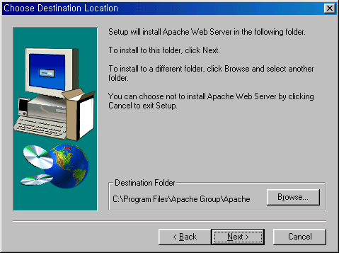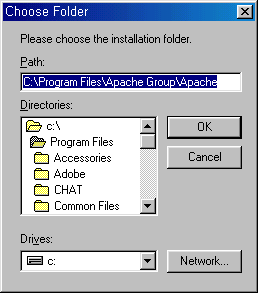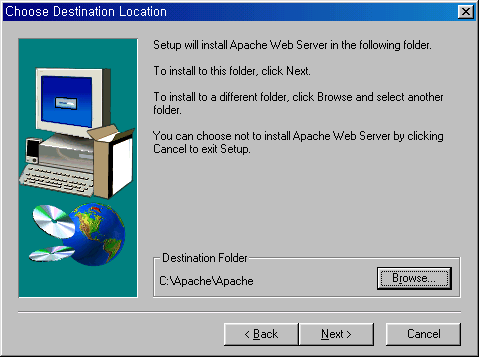 설치할 디렉토리를 C:\Apache\Apache로 수정한다.