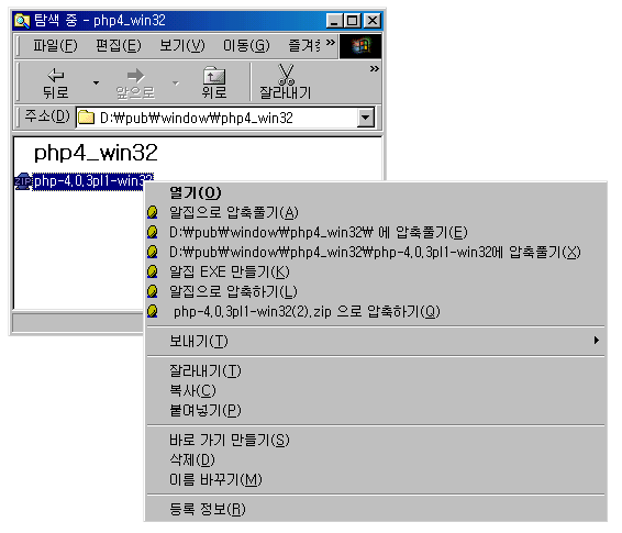 2. PHP4 설치하기 php4_win32.zip을 다운로드 받은후, 아래와 같이 압축을 푼다.