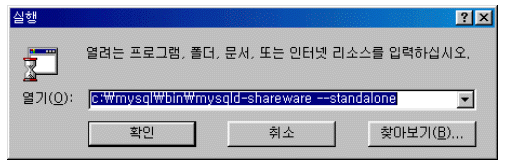 다. 테스트 테스트를 위해 Mysqld데몬을 실행하고, Apache웹서버 데몬을를 실행해야 한다. 탐색기나. 시작->실행에서, c:\mysql\bin\mysqld-shareware or c:\mysql\bin\mysqld 와 같이 하면, MySQL데몬을 실행한다.