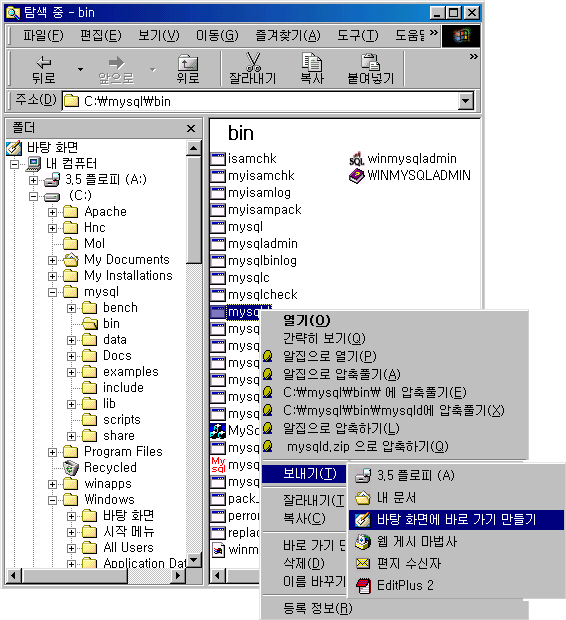 바탕화면에 mysqld 데몬을 실행할 수 있는 바로가기 버튼 만들기