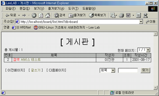 검색입력 박스에 "검색"이란 단어를 입력하고, 찾기 버튼을 클릭한다.