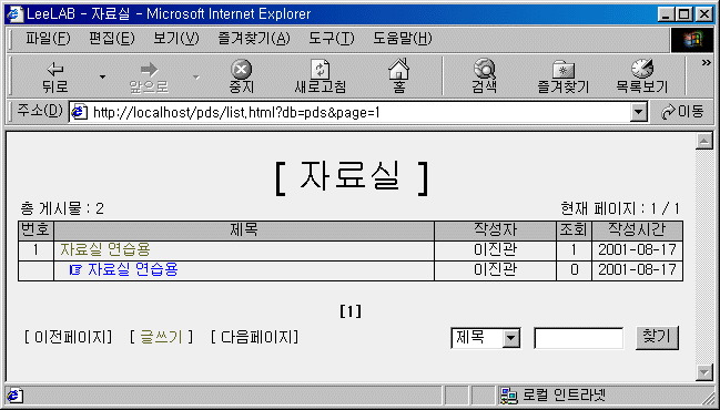 1. MySQL을 이용한 자료실 만들기 자료실은 게시판의 처리와 거의 유사합니다. 단지 파일 업로드와 관련된 부분이 추가되는 것 뿐입니다. 그러므로, 이전장에서 만들 게시판을 이용하여 작업합니다. 검색기능 페이지 이동 기능도 게시판에서 설명하였으므로 생략합니다. 지금부터 따라가면서 만들어보기 바랍니다.