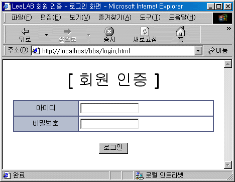 <HTML> <HEAD> <TITLE> LeeLAB 회원 인증 - 로그인 화면 </TITLE> </HEAD>