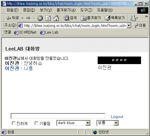 <body bgcolor="#EEEEEE"> <table width=600 align=left><tr><td align="left"><font size=3><b>LeeLAB 대화방</td><td align="right" height=45 valign="bottom">
