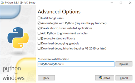 Customize installation 선택합니다.