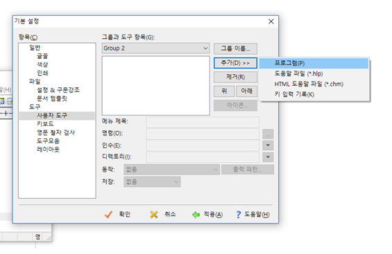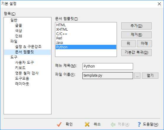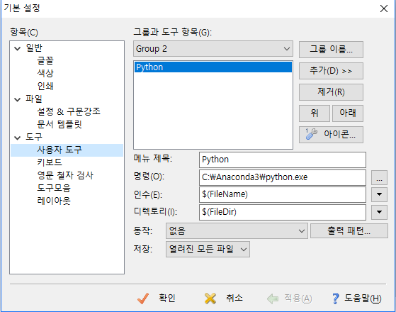 도구 -> 기본설정